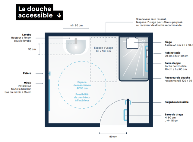 Nous accompagnons les personnes handicapées ou à mobilité réduite dans leur projet d’aménagement de salle de bain ergonomique, de la conception (visite à domicile, établissement du plan, descriptif technique) jusqu’à la réalisation par d’ installateurs agréé par IDHRA, nous prenons en compte l’intégralité de la problématique de l’aménagement de la salle de bain . Chaque équipement au projet de salle de bain ergonomique fait l’objet d’une déclinaison sur-mesure ( paroi de douche, receveur, porte de douche à mi hauteur, lavabos ergonomiques).